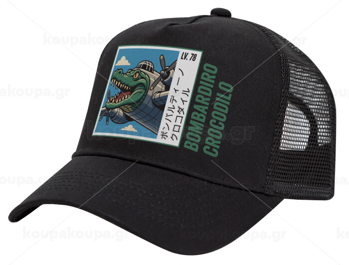 Bombardiro Crocodilo, Καπέλο Trucker με Δίχτυ, Μαύρο, (ΒΑΜΒΑΚΕΡΟ, ΠΑΙΔΙΚΟ, UNISEX, ONE SIZE)