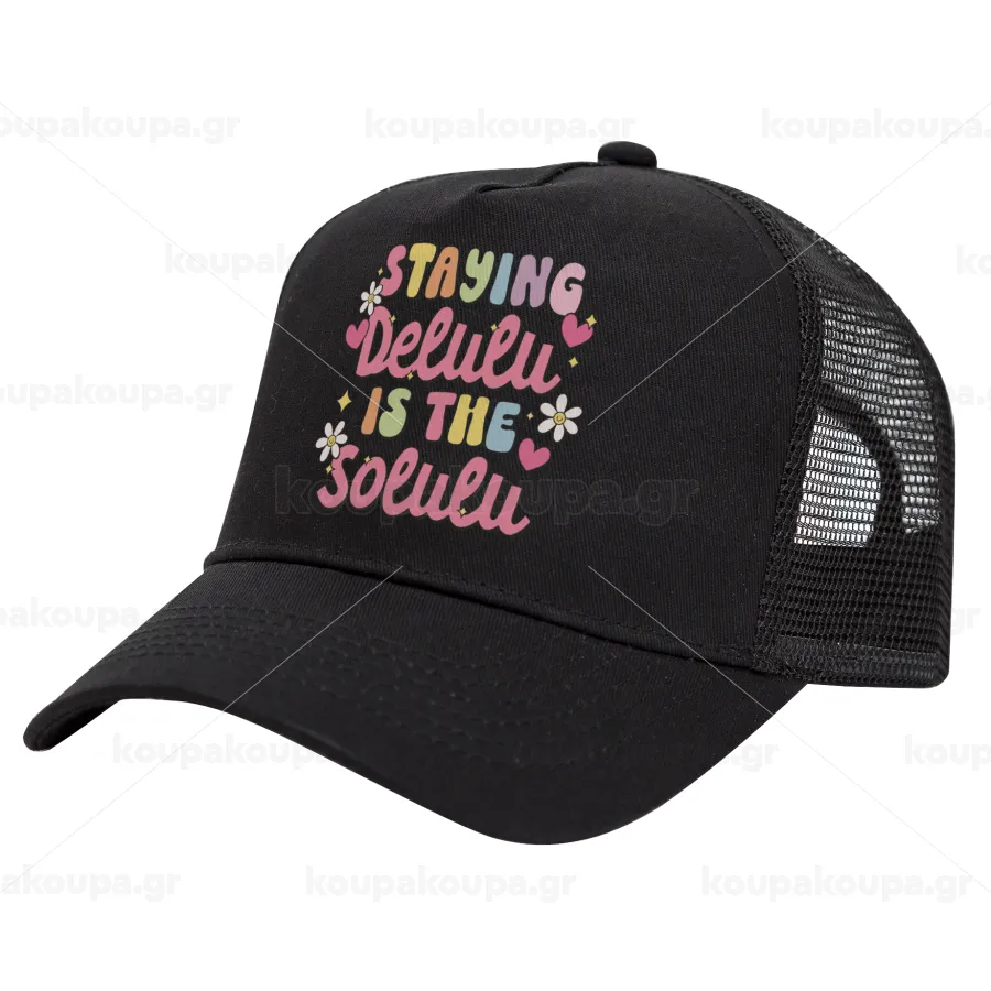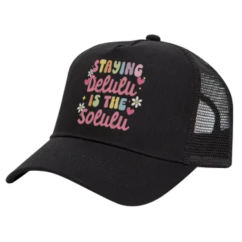 Delulu, Καπέλο Trucker με Δίχτυ, Μαύρο, (ΒΑΜΒΑΚΕΡΟ, ΠΑΙΔΙΚΟ, UNISEX, ONE SIZE)