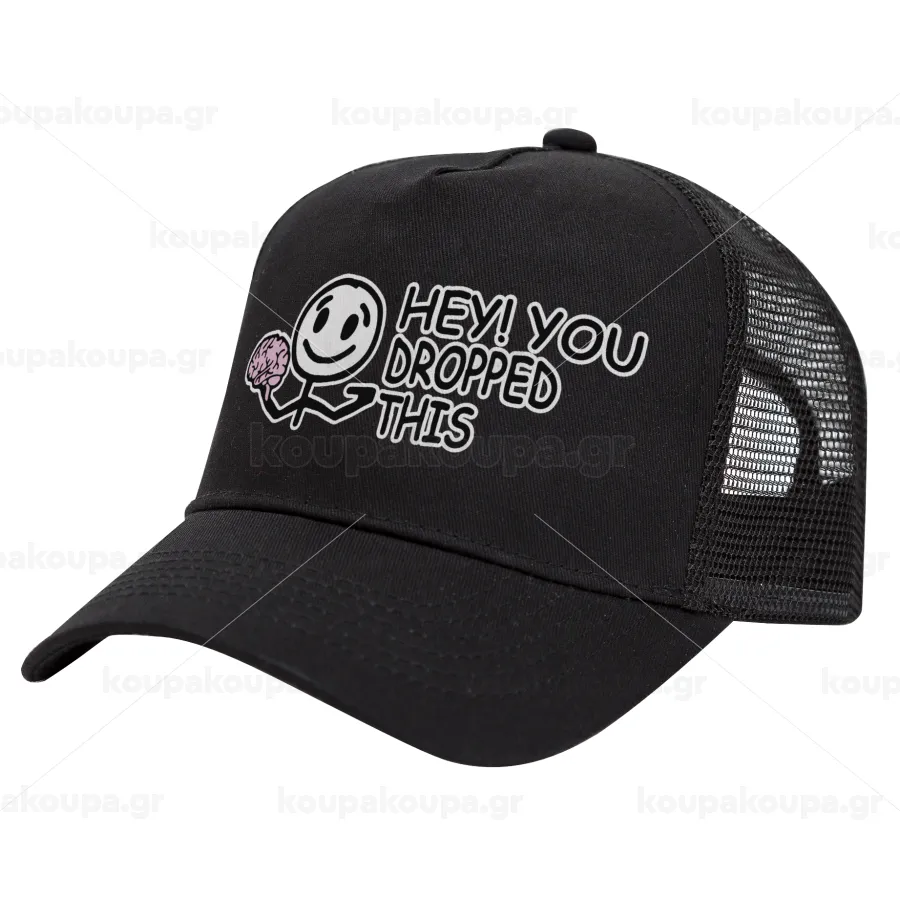 Hey! You dropped this, Καπέλο Trucker με Δίχτυ, Μαύρο, (ΒΑΜΒΑΚΕΡΟ, ΠΑΙΔΙΚΟ, UNISEX, ONE SIZE)