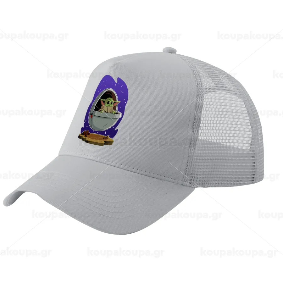 Baby Yoda mandalorian, Καπέλο Trucker με Δίχτυ, ΓΚΡΙ, (ΒΑΜΒΑΚΕΡΟ, ΠΑΙΔΙΚΟ, UNISEX, ONE SIZE)