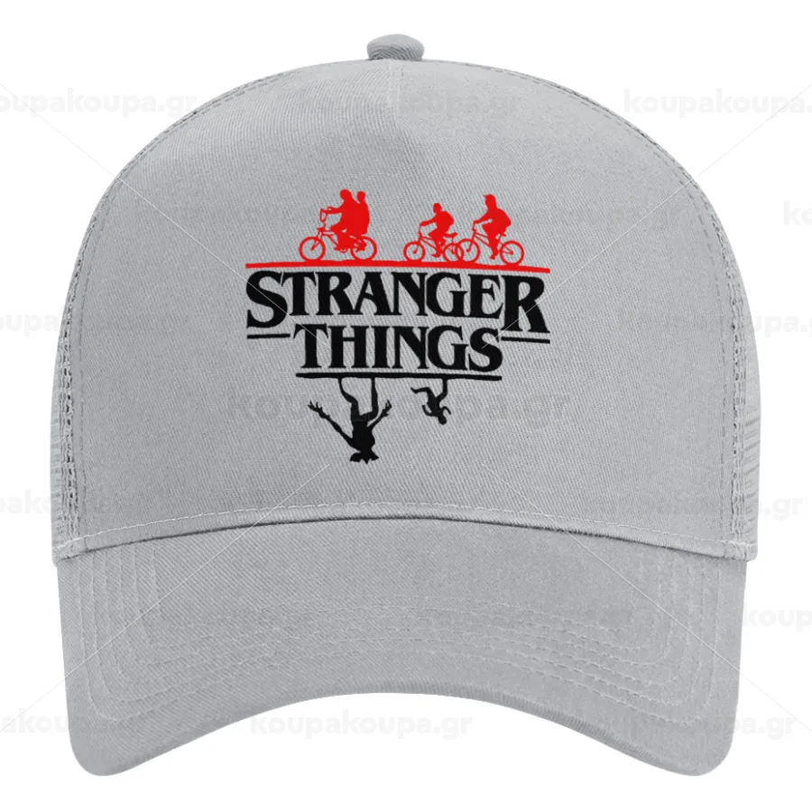 Stranger Things upside down, Καπέλο Trucker με Δίχτυ, ΓΚΡΙ, (ΒΑΜΒΑΚΕΡΟ, ΠΑΙΔΙΚΟ, UNISEX, ONE SIZE)