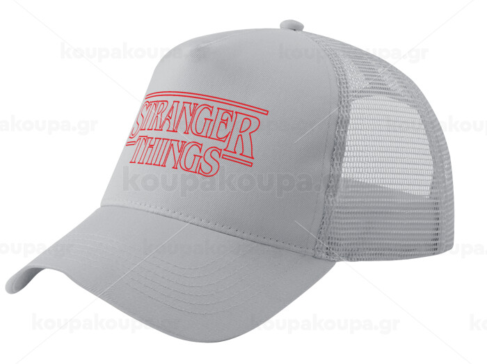 Stranger Things Logo, Καπέλο Trucker με Δίχτυ, ΓΚΡΙ, (ΒΑΜΒΑΚΕΡΟ, ΠΑΙΔΙΚΟ, UNISEX, ONE SIZE)