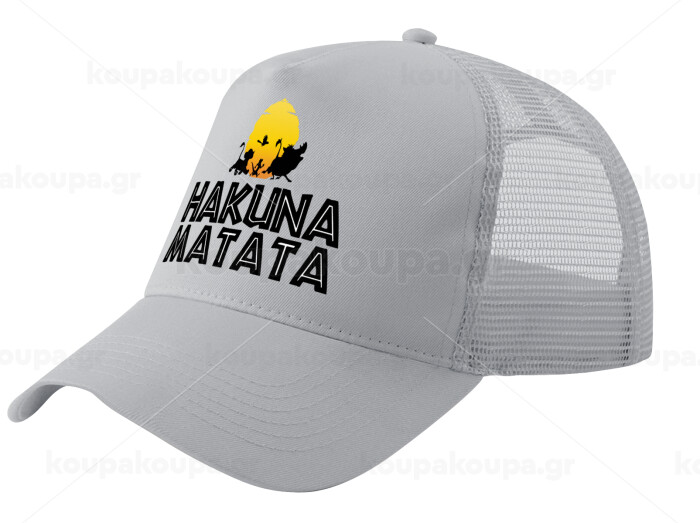 Hakuna Matata, Καπέλο Trucker με Δίχτυ, ΓΚΡΙ, (ΒΑΜΒΑΚΕΡΟ, ΠΑΙΔΙΚΟ, UNISEX, ONE SIZE)