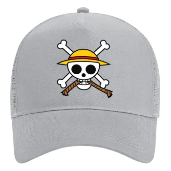 Onepiece skull, Καπέλο Trucker με Δίχτυ, ΓΚΡΙ, (ΒΑΜΒΑΚΕΡΟ, ΠΑΙΔΙΚΟ, UNISEX, ONE SIZE)