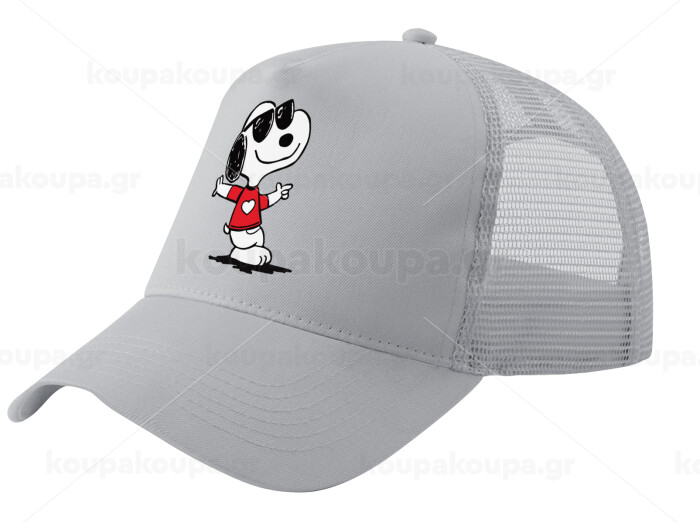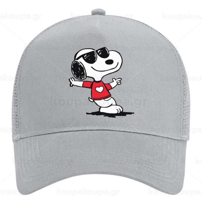 Snoopy καρδούλα, Καπέλο Trucker με Δίχτυ, ΓΚΡΙ, (ΒΑΜΒΑΚΕΡΟ, ΠΑΙΔΙΚΟ, UNISEX, ONE SIZE)