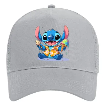 Stitch Ice cream, Καπέλο Trucker με Δίχτυ, ΓΚΡΙ, (ΒΑΜΒΑΚΕΡΟ, ΠΑΙΔΙΚΟ, UNISEX, ONE SIZE)