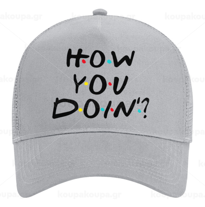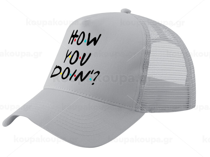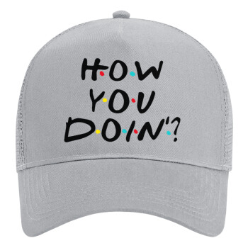 Friends How You Doin'?, Καπέλο Trucker με Δίχτυ, ΓΚΡΙ, (ΒΑΜΒΑΚΕΡΟ, ΠΑΙΔΙΚΟ, UNISEX, ONE SIZE)