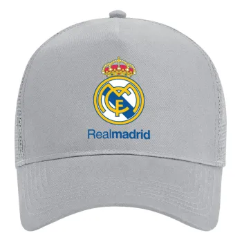 Real Madrid CF, Καπέλο Trucker με Δίχτυ, ΓΚΡΙ, (ΒΑΜΒΑΚΕΡΟ, ΠΑΙΔΙΚΟ, UNISEX, ONE SIZE)