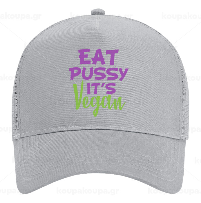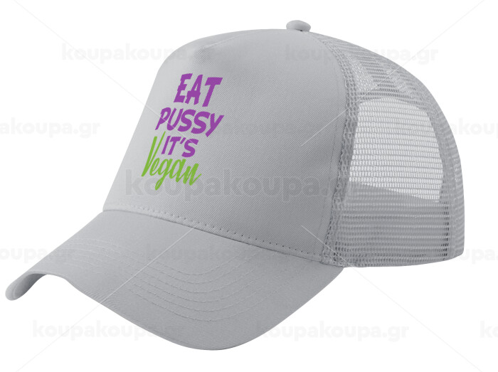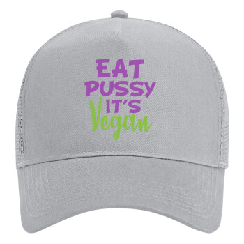 EAT pussy it's vegan, Καπέλο Trucker με Δίχτυ, ΓΚΡΙ, (ΒΑΜΒΑΚΕΡΟ, ΠΑΙΔΙΚΟ, UNISEX, ONE SIZE)