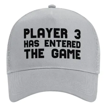 Player 3 has entered the Game, Καπέλο Trucker με Δίχτυ, ΓΚΡΙ, (ΒΑΜΒΑΚΕΡΟ, ΠΑΙΔΙΚΟ, UNISEX, ONE SIZE)