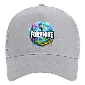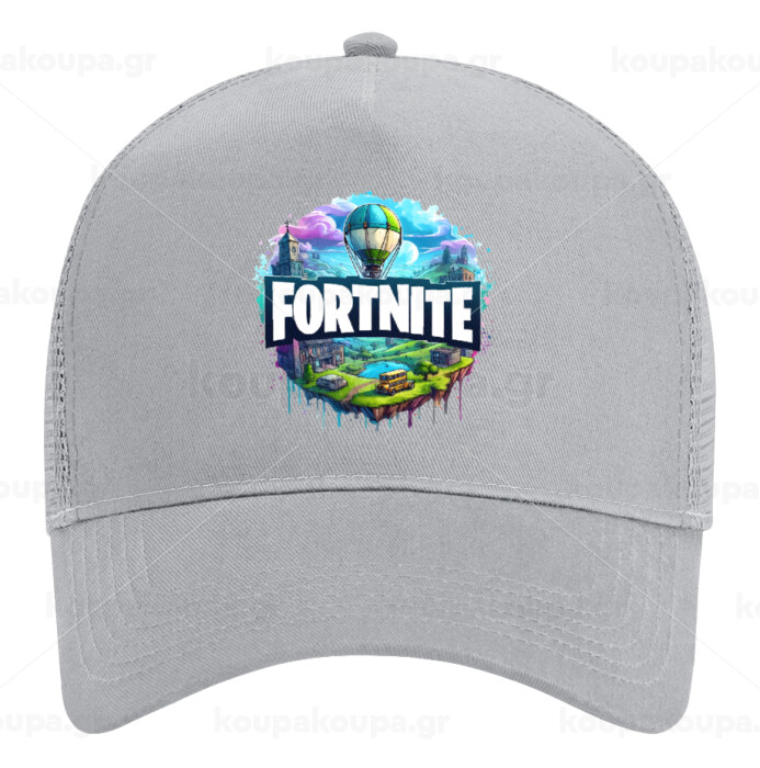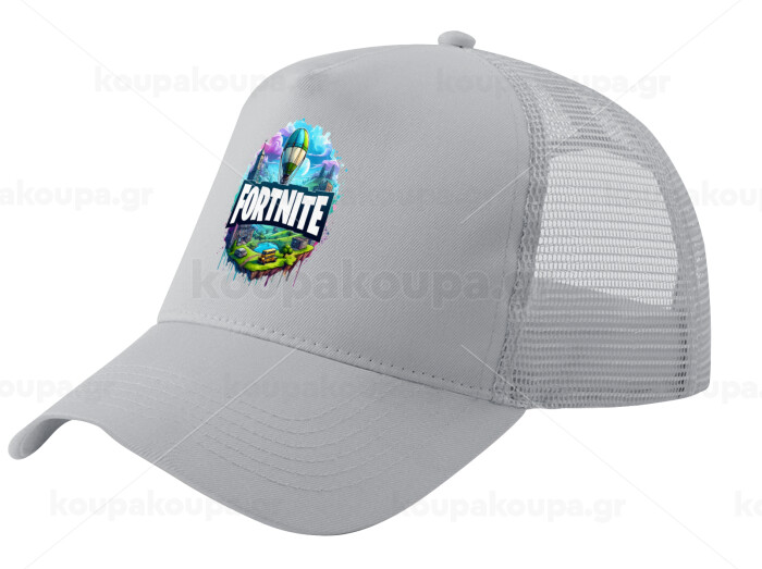 Fortnite land, Καπέλο Trucker με Δίχτυ, ΓΚΡΙ, (ΒΑΜΒΑΚΕΡΟ, ΠΑΙΔΙΚΟ, UNISEX, ONE SIZE)