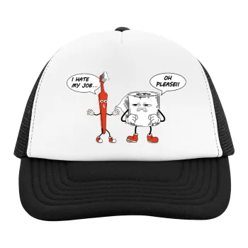 I hate my job, Καπέλο παιδικό Soft Trucker με Δίχτυ ΜΑΥΡΟ/ΛΕΥΚΟ (POLYESTER, ΠΑΙΔΙΚΟ, ONE SIZE)