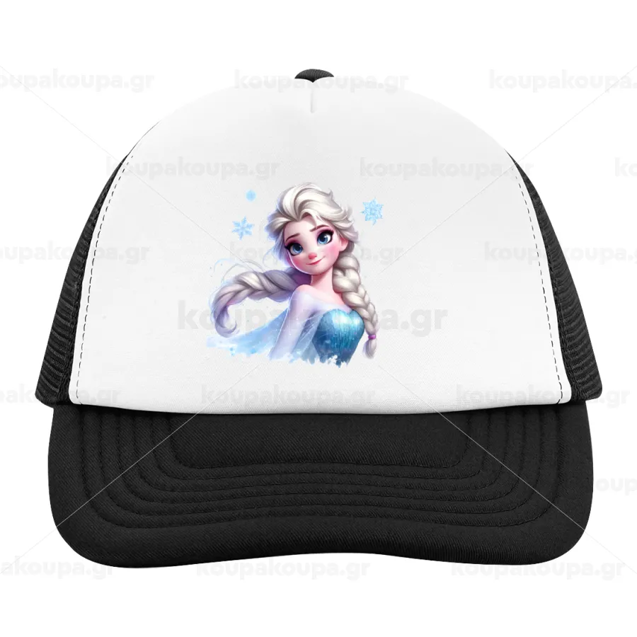 Elsa Princess, Καπέλο παιδικό Soft Trucker με Δίχτυ ΜΑΥΡΟ/ΛΕΥΚΟ (POLYESTER, ΠΑΙΔΙΚΟ, ONE SIZE)
