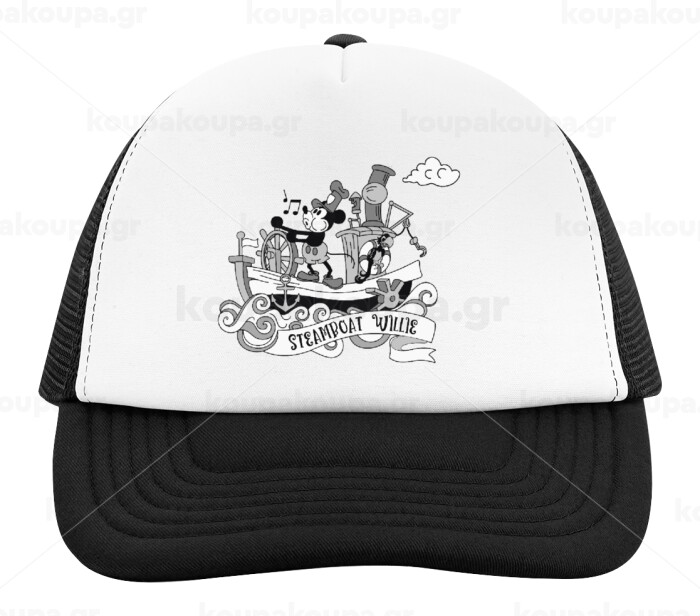 Mickey steamboat, Καπέλο παιδικό Soft Trucker με Δίχτυ ΜΑΥΡΟ/ΛΕΥΚΟ (POLYESTER, ΠΑΙΔΙΚΟ, ONE SIZE)