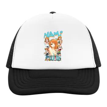 Nami One Piece, Καπέλο παιδικό Soft Trucker με Δίχτυ ΜΑΥΡΟ/ΛΕΥΚΟ (POLYESTER, ΠΑΙΔΙΚΟ, ONE SIZE)