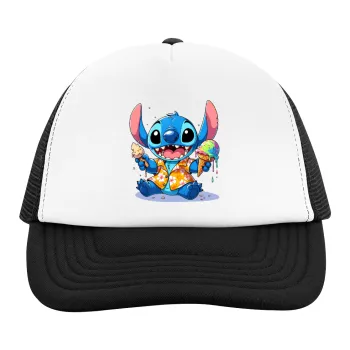 Stitch Ice cream, Καπέλο παιδικό Soft Trucker με Δίχτυ ΜΑΥΡΟ/ΛΕΥΚΟ (POLYESTER, ΠΑΙΔΙΚΟ, ONE SIZE)