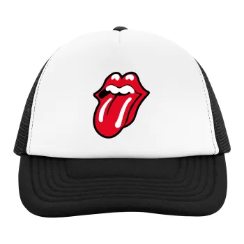 Rolling Stones Kiss, Καπέλο παιδικό Soft Trucker με Δίχτυ ΜΑΥΡΟ/ΛΕΥΚΟ (POLYESTER, ΠΑΙΔΙΚΟ, ONE SIZE)