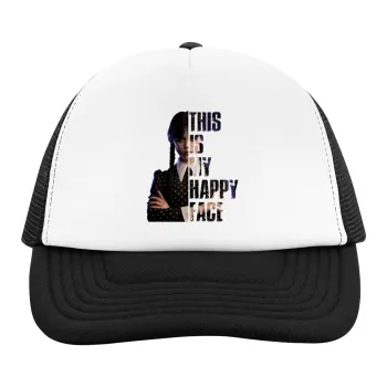 Wednesday, This is my happy face, Καπέλο παιδικό Soft Trucker με Δίχτυ ΜΑΥΡΟ/ΛΕΥΚΟ (POLYESTER, ΠΑΙΔΙΚΟ, ONE SIZE)