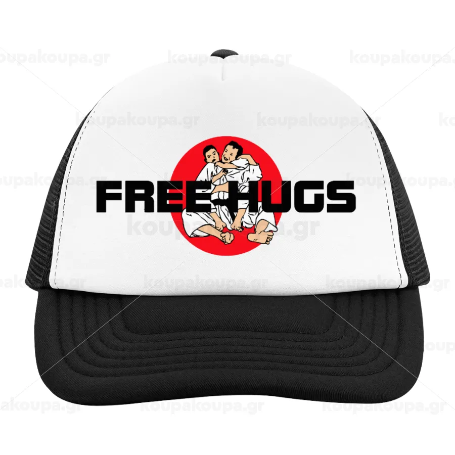 JUDO free hugs, Καπέλο παιδικό Soft Trucker με Δίχτυ ΜΑΥΡΟ/ΛΕΥΚΟ (POLYESTER, ΠΑΙΔΙΚΟ, ONE SIZE)