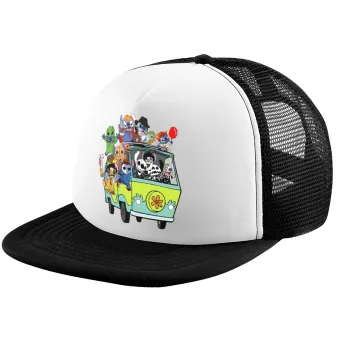 Stitch Halloween scooby car, Καπέλο παιδικό Soft Trucker με Δίχτυ ΜΑΥΡΟ/ΛΕΥΚΟ (POLYESTER, ΠΑΙΔΙΚΟ, ONE SIZE)