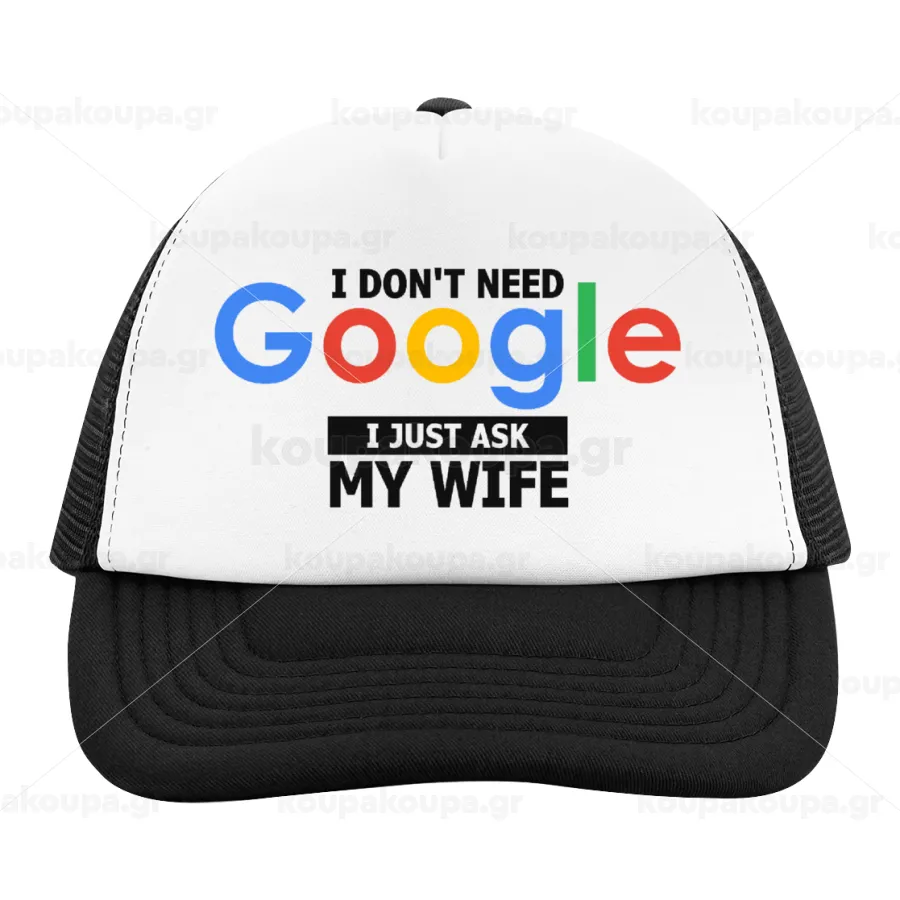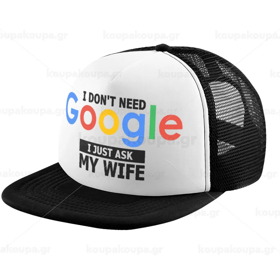I don't need Google, just ask my WIFE, Καπέλο παιδικό Soft Trucker με Δίχτυ ΜΑΥΡΟ/ΛΕΥΚΟ (POLYESTER, ΠΑΙΔΙΚΟ, ONE SIZE)