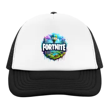 Fortnite land, Καπέλο παιδικό Soft Trucker με Δίχτυ ΜΑΥΡΟ/ΛΕΥΚΟ (POLYESTER, ΠΑΙΔΙΚΟ, ONE SIZE)
