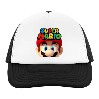 Super mario, Καπέλο παιδικό Soft Trucker με Δίχτυ ΜΑΥΡΟ/ΛΕΥΚΟ (POLYESTER, ΠΑΙΔΙΚΟ, ONE SIZE)