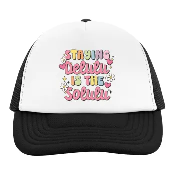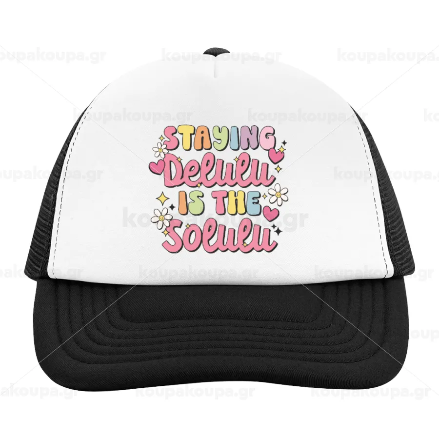 Delulu, Καπέλο παιδικό Soft Trucker με Δίχτυ ΜΑΥΡΟ/ΛΕΥΚΟ (POLYESTER, ΠΑΙΔΙΚΟ, ONE SIZE)