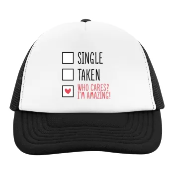 Single, Taken, Who cares i'm amazing, Καπέλο παιδικό Soft Trucker με Δίχτυ ΜΑΥΡΟ/ΛΕΥΚΟ (POLYESTER, ΠΑΙΔΙΚΟ, ONE SIZE)