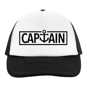CAPTAIN, Καπέλο παιδικό Soft Trucker με Δίχτυ ΜΑΥΡΟ/ΛΕΥΚΟ (POLYESTER, ΠΑΙΔΙΚΟ, ONE SIZE)