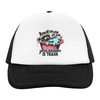 Splish splash your opinion is trash, Καπέλο παιδικό Soft Trucker με Δίχτυ ΜΑΥΡΟ/ΛΕΥΚΟ (POLYESTER, ΠΑΙΔΙΚΟ, ONE SIZE)