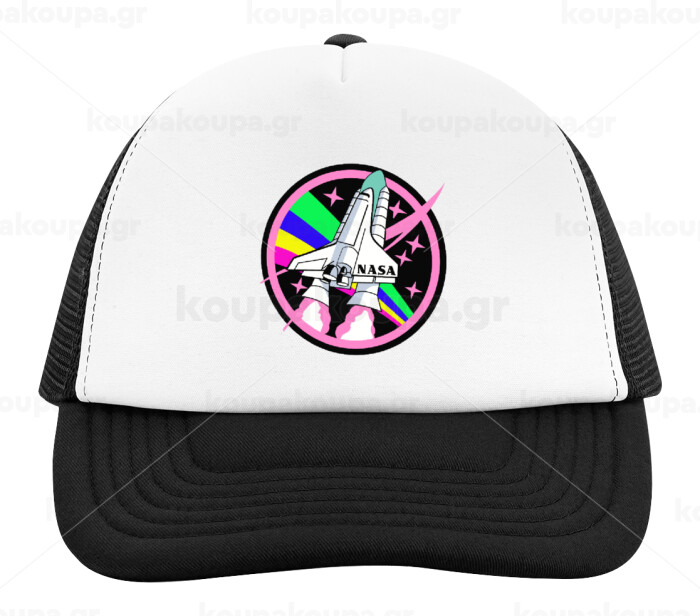 NASA pink, Καπέλο παιδικό Soft Trucker με Δίχτυ ΜΑΥΡΟ/ΛΕΥΚΟ (POLYESTER, ΠΑΙΔΙΚΟ, ONE SIZE)