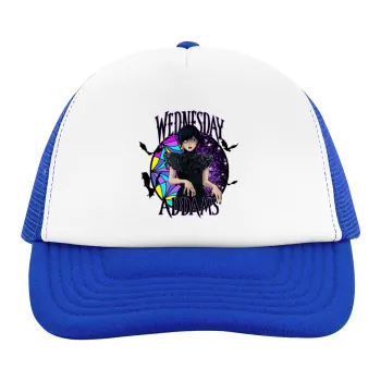 Wednesday Jenna Ortega, Καπέλο παιδικό Soft Trucker με Δίχτυ ΜΠΛΕ/ΛΕΥΚΟ (POLYESTER, ΠΑΙΔΙΚΟ, ONE SIZE)