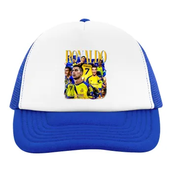 Cristiano Ronaldo Al Nassr, Καπέλο παιδικό Soft Trucker με Δίχτυ ΜΠΛΕ/ΛΕΥΚΟ (POLYESTER, ΠΑΙΔΙΚΟ, ONE SIZE)