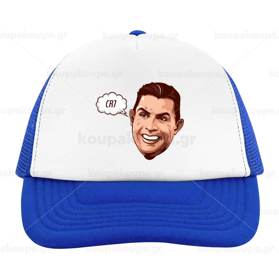 Cristiano Ronaldo, Καπέλο παιδικό Soft Trucker με Δίχτυ ΜΠΛΕ/ΛΕΥΚΟ (POLYESTER, ΠΑΙΔΙΚΟ, ONE SIZE)