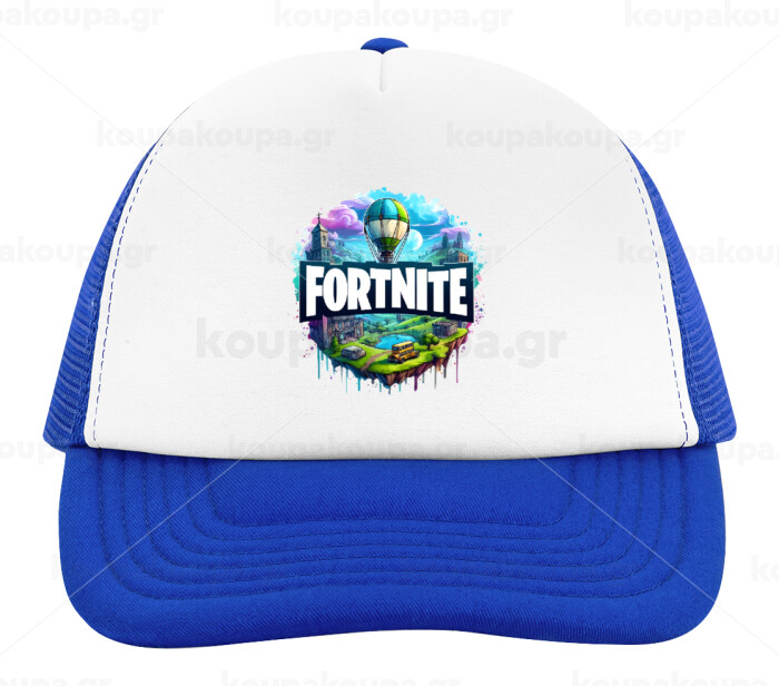 Fortnite land, Καπέλο παιδικό Soft Trucker με Δίχτυ ΜΠΛΕ/ΛΕΥΚΟ (POLYESTER, ΠΑΙΔΙΚΟ, ONE SIZE)