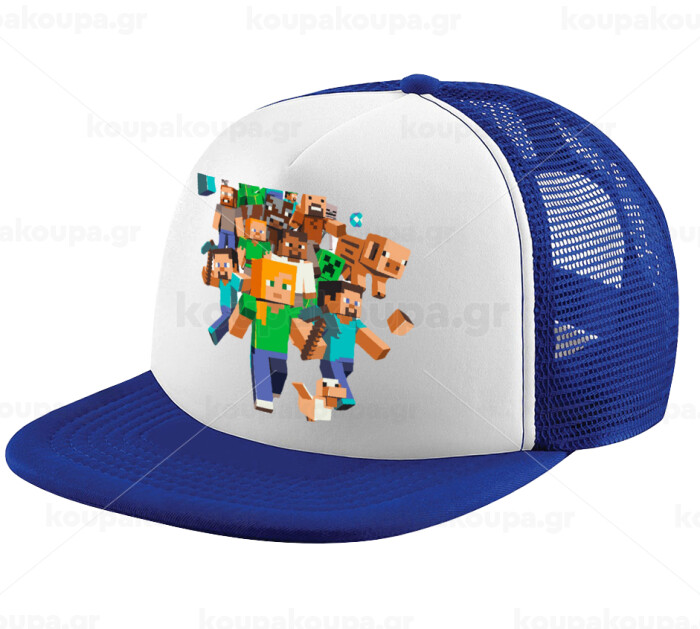 Minecraft adventure, Καπέλο παιδικό Soft Trucker με Δίχτυ ΜΠΛΕ/ΛΕΥΚΟ (POLYESTER, ΠΑΙΔΙΚΟ, ONE SIZE)