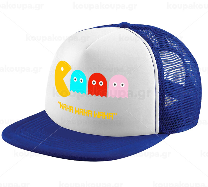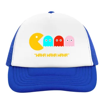 Pacman waka waka waka, Καπέλο παιδικό Soft Trucker με Δίχτυ ΜΠΛΕ/ΛΕΥΚΟ (POLYESTER, ΠΑΙΔΙΚΟ, ONE SIZE)