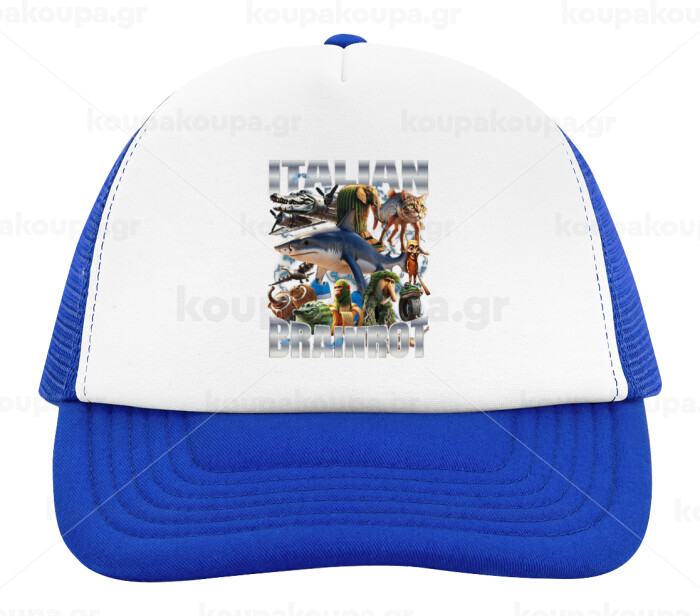 Italian Brainrot, Καπέλο παιδικό Soft Trucker με Δίχτυ ΜΠΛΕ/ΛΕΥΚΟ (POLYESTER, ΠΑΙΔΙΚΟ, ONE SIZE)