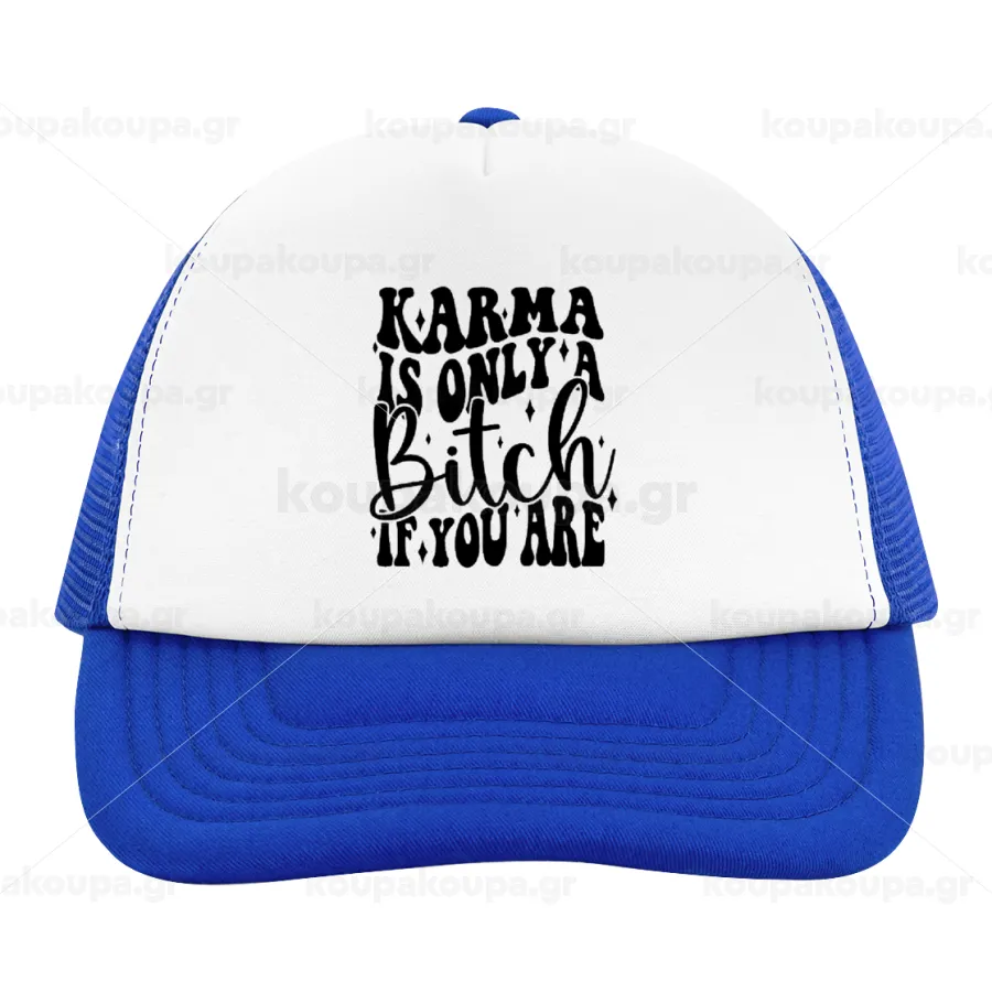 Karma is Only A Bitch if You Are, Καπέλο παιδικό Soft Trucker με Δίχτυ ΜΠΛΕ/ΛΕΥΚΟ (POLYESTER, ΠΑΙΔΙΚΟ, ONE SIZE)
