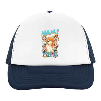 Nami One Piece, Καπέλο παιδικό Soft Trucker με Δίχτυ ΜΠΛΕ ΣΚΟΥΡΟ/ΛΕΥΚΟ (POLYESTER, ΠΑΙΔΙΚΟ, ONE SIZE)