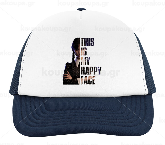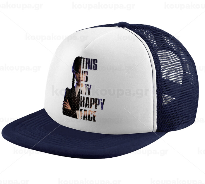 Wednesday, This is my happy face, Καπέλο παιδικό Soft Trucker με Δίχτυ ΜΠΛΕ ΣΚΟΥΡΟ/ΛΕΥΚΟ (POLYESTER, ΠΑΙΔΙΚΟ, ONE SIZE)