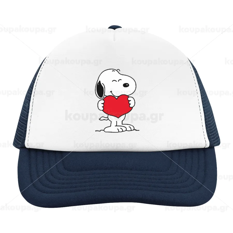 Snoopy takemy heart, Καπέλο παιδικό Soft Trucker με Δίχτυ ΜΠΛΕ ΣΚΟΥΡΟ/ΛΕΥΚΟ (POLYESTER, ΠΑΙΔΙΚΟ, ONE SIZE)