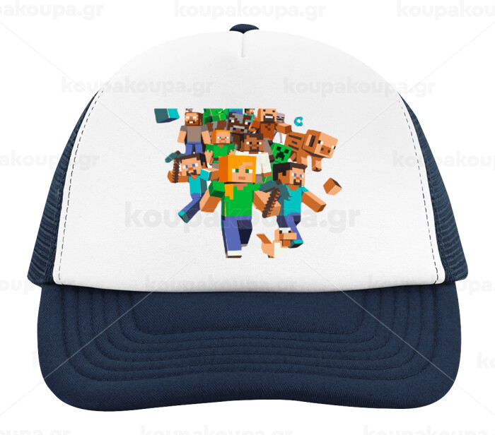 Minecraft adventure, Καπέλο παιδικό Soft Trucker με Δίχτυ ΜΠΛΕ ΣΚΟΥΡΟ/ΛΕΥΚΟ (POLYESTER, ΠΑΙΔΙΚΟ, ONE SIZE)