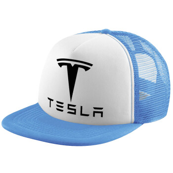 Tesla motors, Καπέλο παιδικό Soft Trucker με Δίχτυ ΓΑΛΑΖΙΟ/ΛΕΥΚΟ (POLYESTER, ΠΑΙΔΙΚΟ, ONE SIZE)