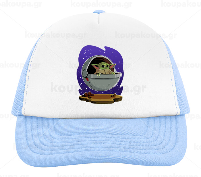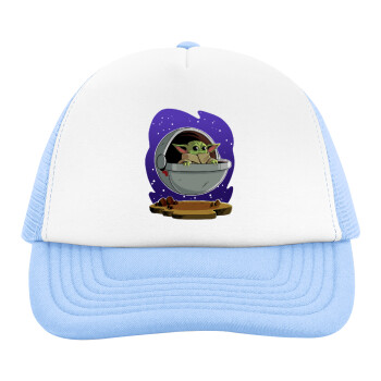 Baby Yoda mandalorian, Καπέλο παιδικό Soft Trucker με Δίχτυ ΓΑΛΑΖΙΟ/ΛΕΥΚΟ (POLYESTER, ΠΑΙΔΙΚΟ, ONE SIZE)