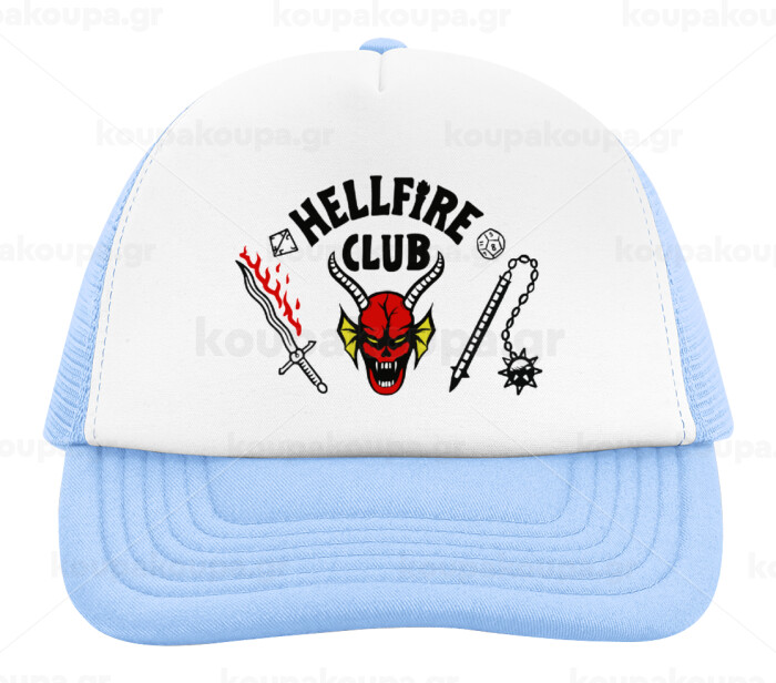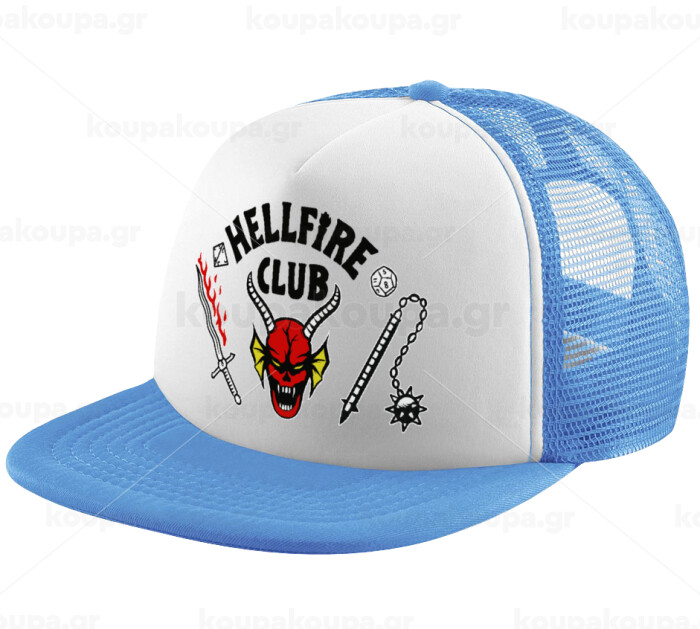 Hellfire CLub, Stranger Things, Καπέλο παιδικό Soft Trucker με Δίχτυ ΓΑΛΑΖΙΟ/ΛΕΥΚΟ (POLYESTER, ΠΑΙΔΙΚΟ, ONE SIZE)