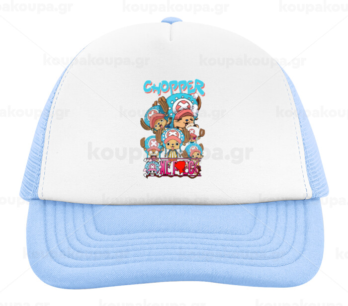 Chopper One Piece, Καπέλο παιδικό Soft Trucker με Δίχτυ ΓΑΛΑΖΙΟ/ΛΕΥΚΟ (POLYESTER, ΠΑΙΔΙΚΟ, ONE SIZE)