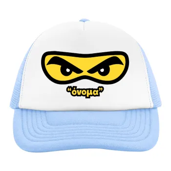 Ninja Eyes με όνομα, Καπέλο παιδικό Soft Trucker με Δίχτυ ΓΑΛΑΖΙΟ/ΛΕΥΚΟ (POLYESTER, ΠΑΙΔΙΚΟ, ONE SIZE)