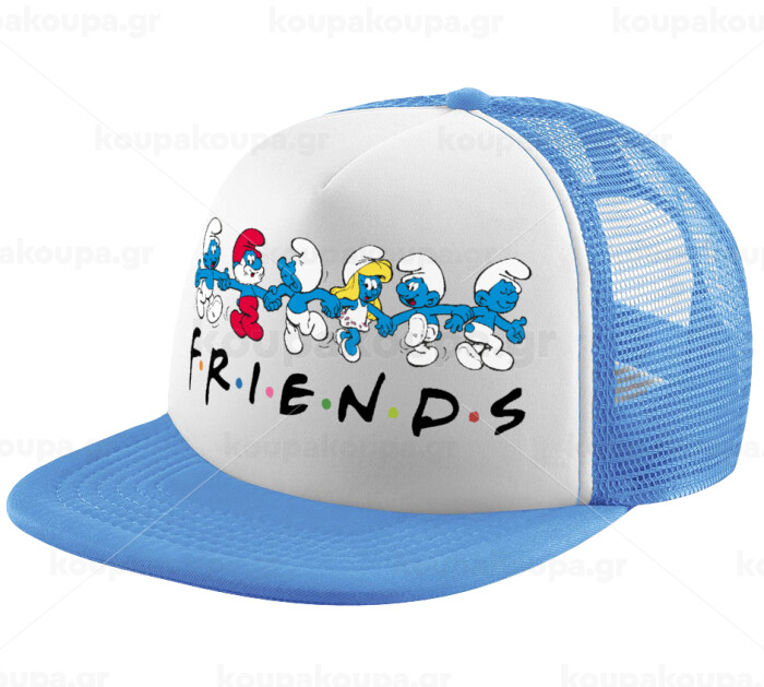 Friends Smurfs, Καπέλο παιδικό Soft Trucker με Δίχτυ ΓΑΛΑΖΙΟ/ΛΕΥΚΟ (POLYESTER, ΠΑΙΔΙΚΟ, ONE SIZE)